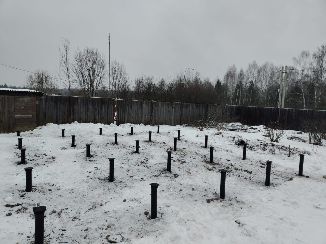 Закрутили 25 винтовых свай для строительства дома 8х8м в зимний период