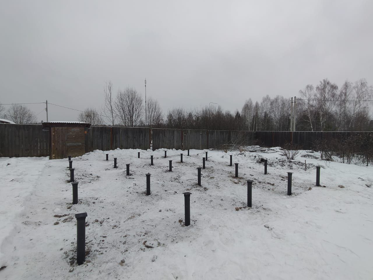 —Закрутили 25 винтовых свай для строительства дома 8х8м в зимний период